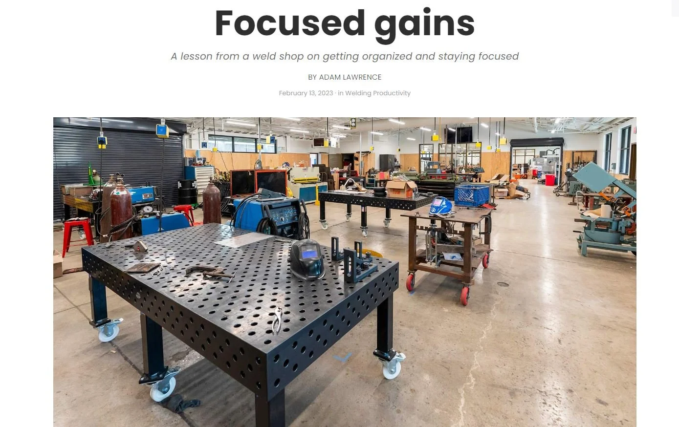 Welding Productivity - February 2023 This article describes how I helped a team of welders improve their productivity and safety using 5S (workplace optimization) Safety, Organization, Kaizen, LeadershipAdam LawrenceFebruary 23, 2023Process Improvement Partners LLCKaizen, Lean, Teamwork, Leadership commitment LinkedIn0 0 Likes